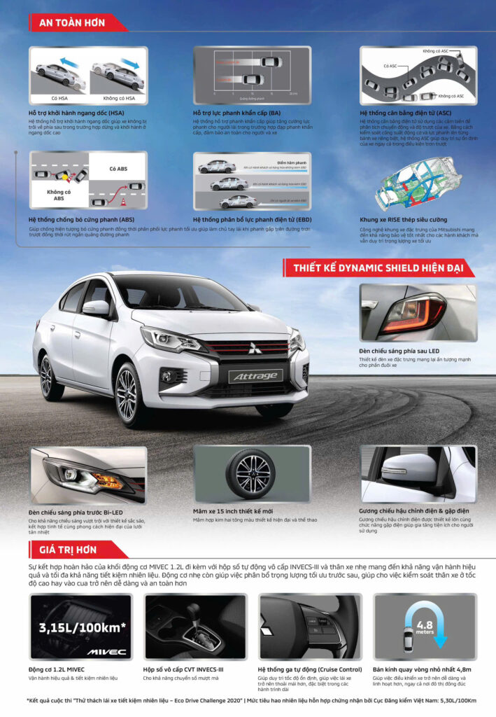 Mitsubishi Attrage 2025 không chỉ gây ấn tượng với thiết kế hiện đại và khả năng tiết kiệm nhiên liệu vượt trội, mà còn được trang bị hệ thống an toàn tiên tiến, mang đến sự an tâm tối đa cho người lái và hành khách.